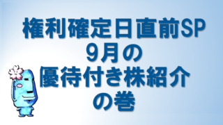 WEBごしにこんにちは!世界のみなさんGOOD MORNING!(ぐっもー)時がたつのも早いもんで、もう9月も後半なってきたなあ!ちゅうことで9月優待付き株をメモしとくで!ちょい!直前すぎる!ええねんええねん。株価なんていつ上がるか下がるか確定もできひんしなちゅうわけで、わいが好き&気になってる株を紹介してくぅー!