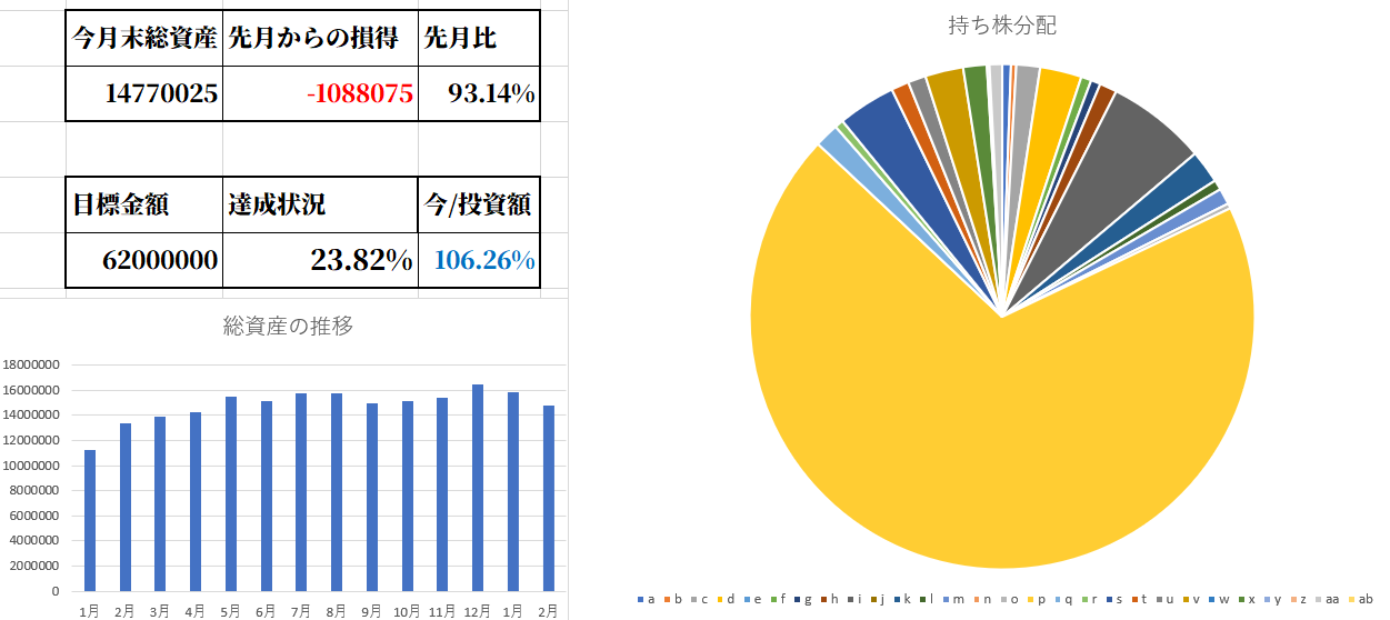 いや、先月も説明したけど先月投入した1,900,000分があるからへこんでいないように見えるよな。でもそれ含めても合わせてさらにマイナスなってるよな。