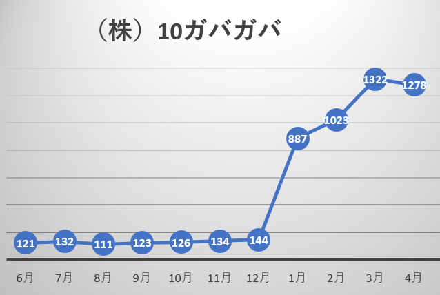そして、まさにこれがテンバガー株です。テンバガー株とは買った時より10倍以上の株価がついた銘柄のことです。